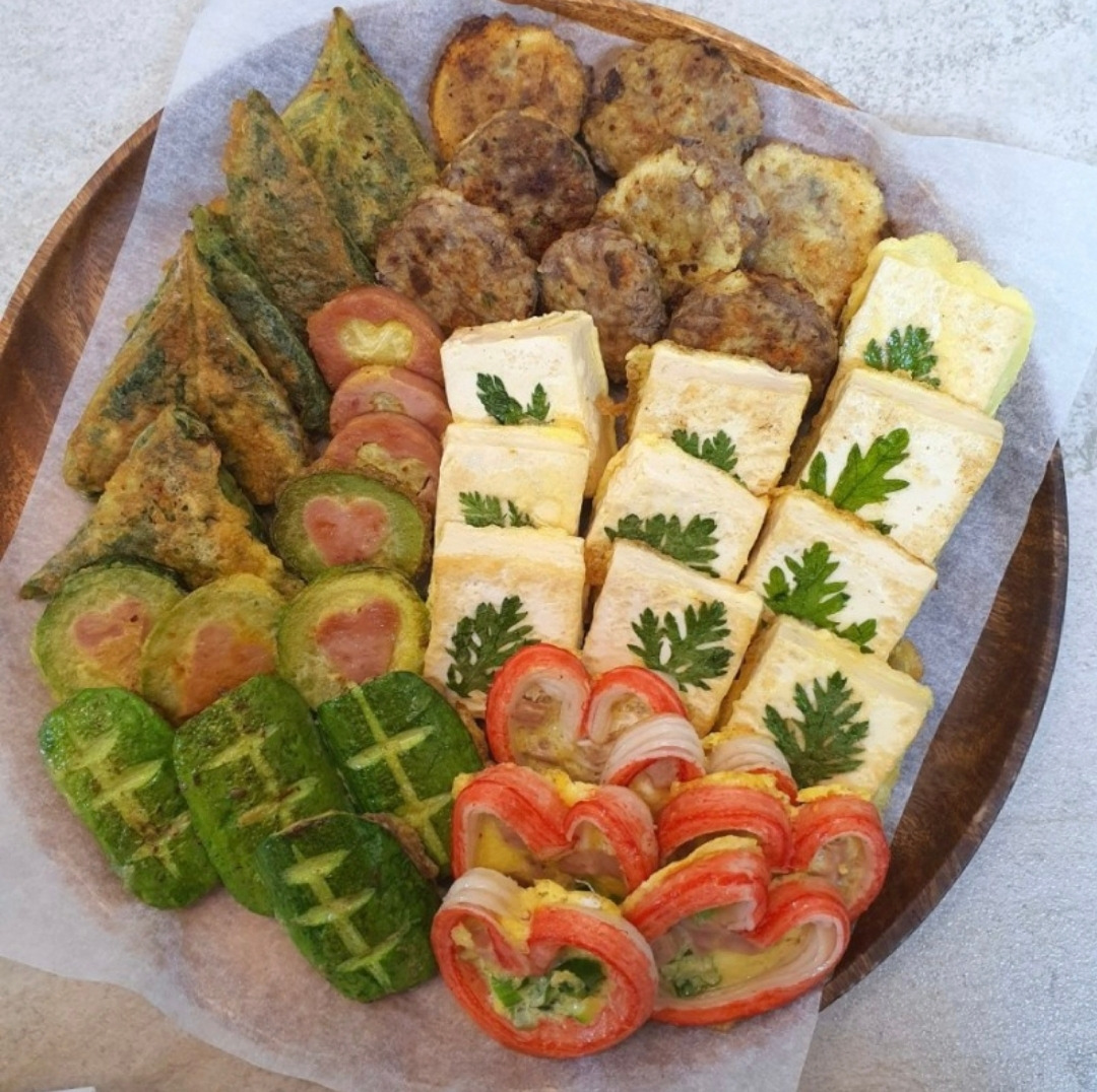 그 맞은편 아랫방 광에는 연탄불이 있었는지 첫째 큰엄마가 다시마와 간장을 달여 닭을 한 마리 통째 찌시며 달큼한 닭 냄새로 우릴 맞이하셨고, 둘째 큰엄마와 울 엄마 그리고 넷째 작은엄마와 막내 숙모는 모두 동그랑땡과 니리미전(꼬치전), 명태전, 미나리전, 부추전을 구우시느라 정신이 없으셨다.