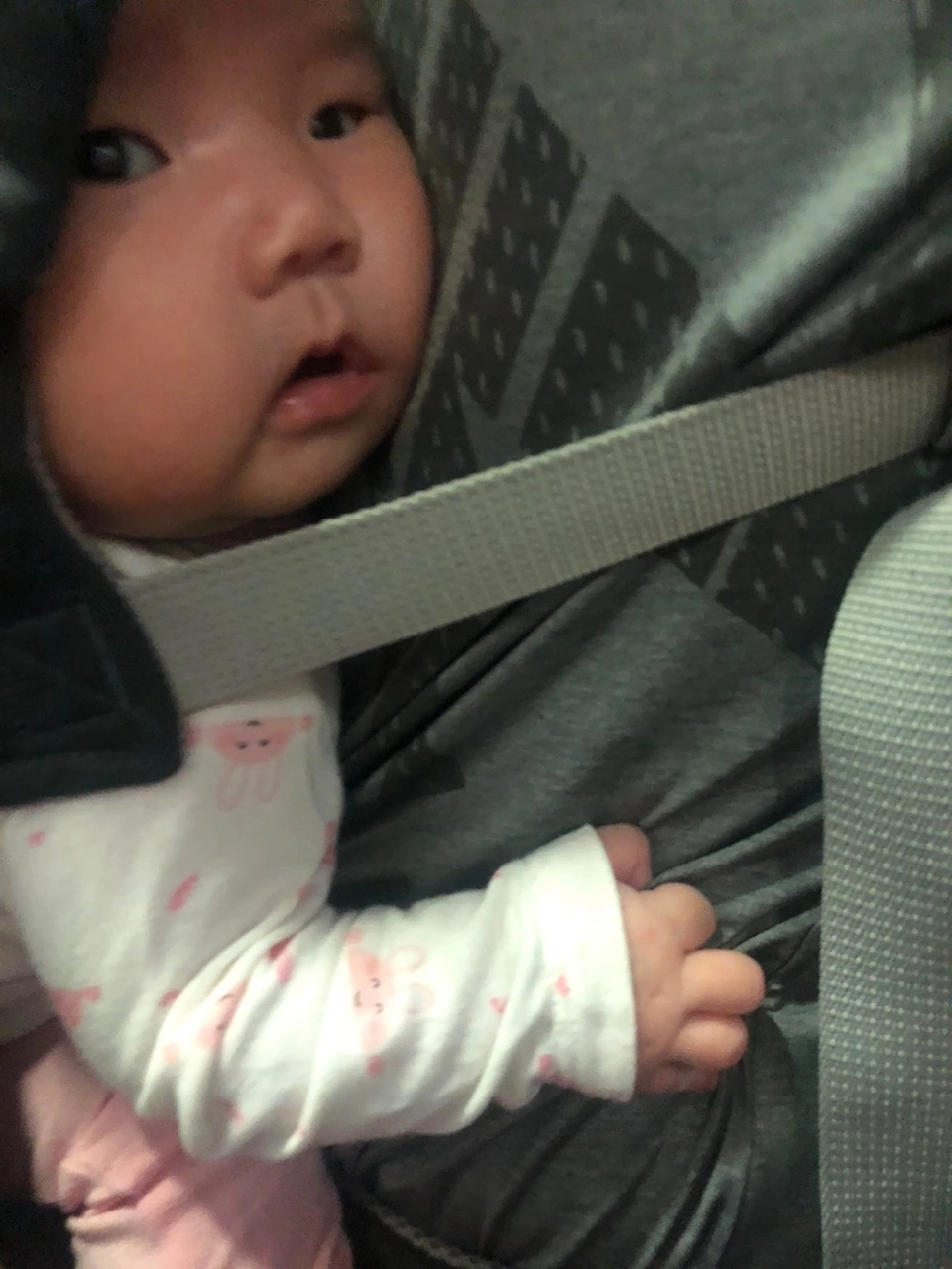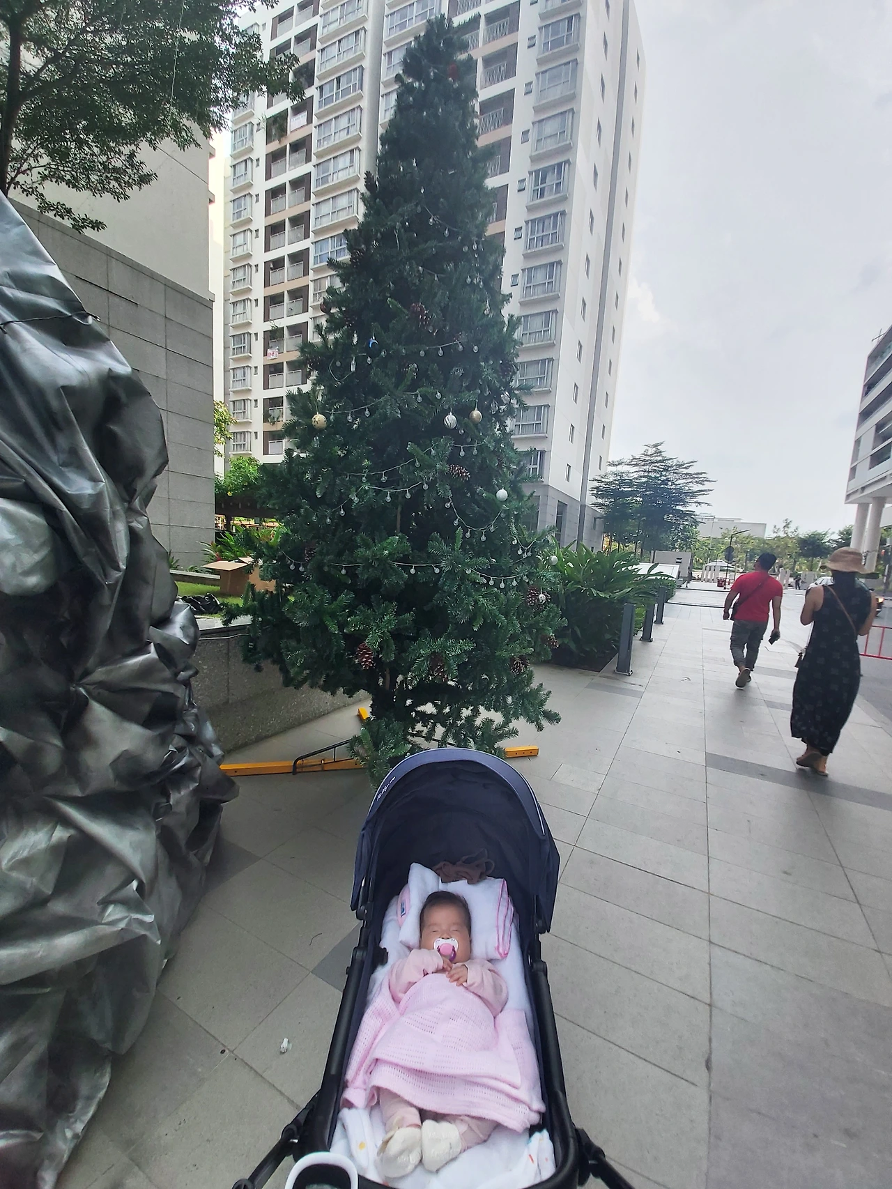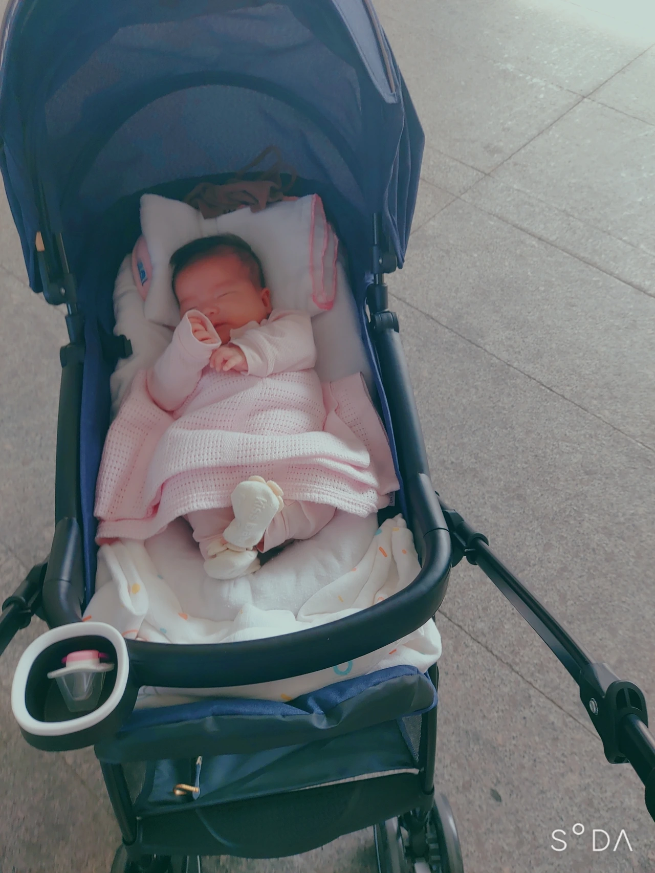 태어난지 며칠 되지 않은 어느날 황달수치가 높아 광선치료를 하며 뼈아프게 눈물흘린 후로 꼬박꼬박 비타민D를 매일 먹이고 햇볕을 쬐어야 한다는 소아과 쌤의 말씀대로 하기위해 슬링을 매고 나갔지만, 벌써 작아져서 아기띠를 매고 나갔더랬다..