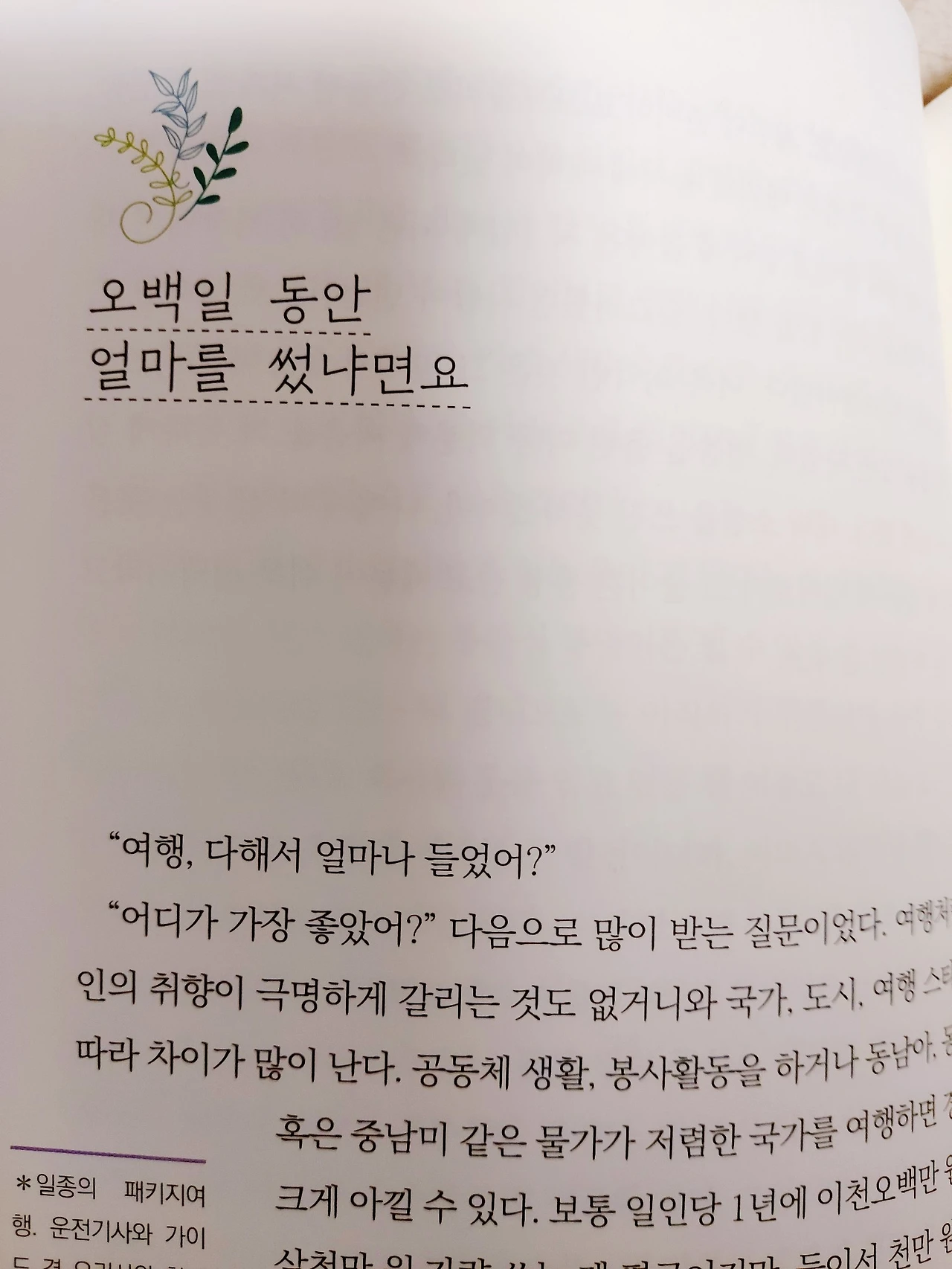 이 책은 여행기라기보다 퇴사기가 아닐까 한다. 정규직으로 근무하는 회사로부터 퇴사가 목표였고, 그것을 찾은 건 여행이었으니까.