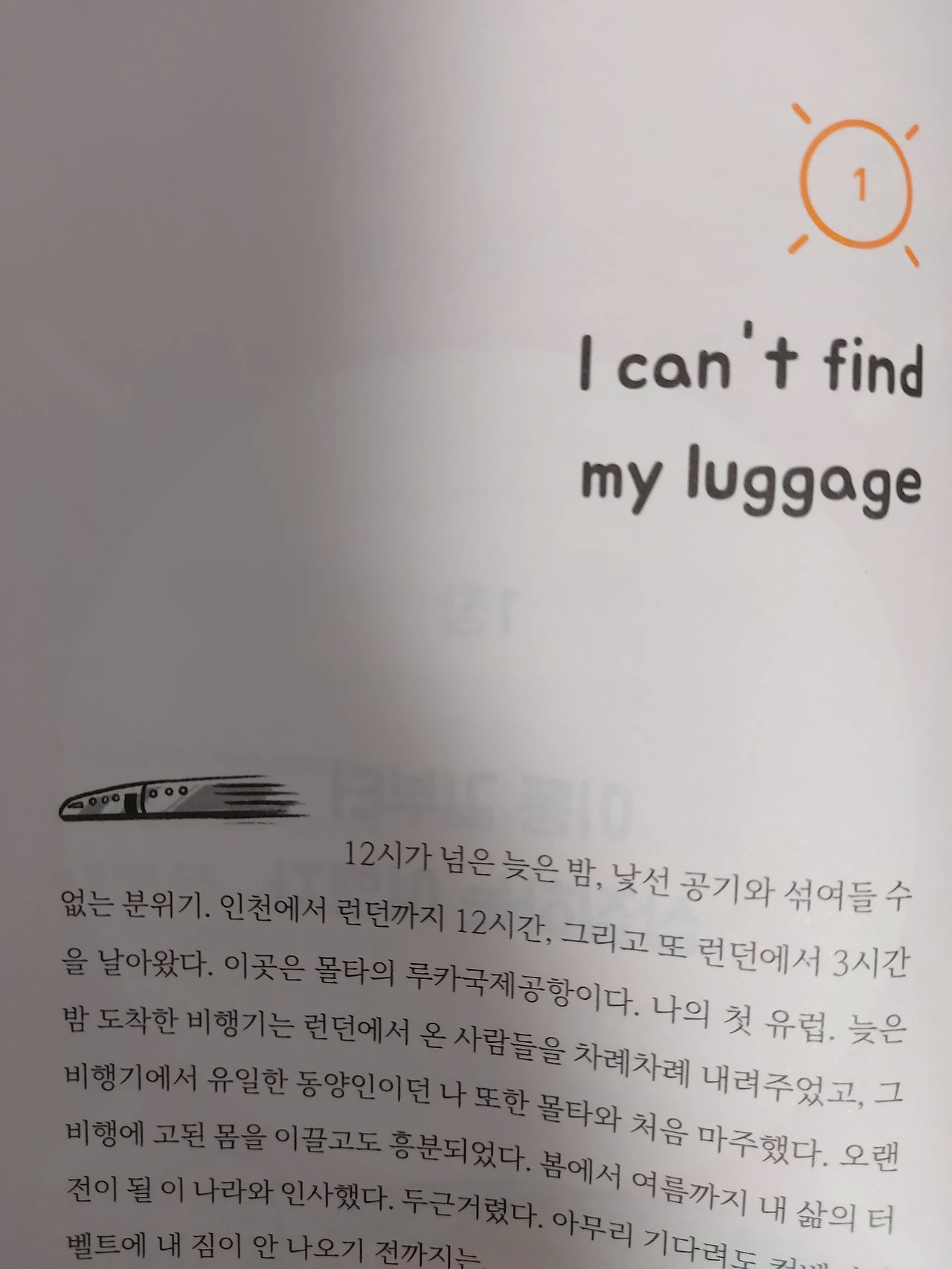 p.14 인천에서 런던까지 12시간, 런던에서 몰타의 루카 국제공항까지 3시간을 날아왔다. 여행 영어책에 나오는 문장을 외웠다. 공항 편에 나온 문장들은 과한 사건사고를 예시로 들어 딱히 쓸 일이 없어 보였다. 난생처음 오는 유럽, 설렘을 안고 28인치나 되는 진한 민트 컬러인 나의 캐리어는 몇 시간째 돌아가는 짐칸에 나올 생각을 안 한다. 당장 I can’t find my liggage! 를 쓸 줄이야! 그러게 내가 런던에서 경유할 때 캐리어도 제대로 탔냐고 몇 번이나 물어보았잖아, 이 히스로 공항 놈들아!!!