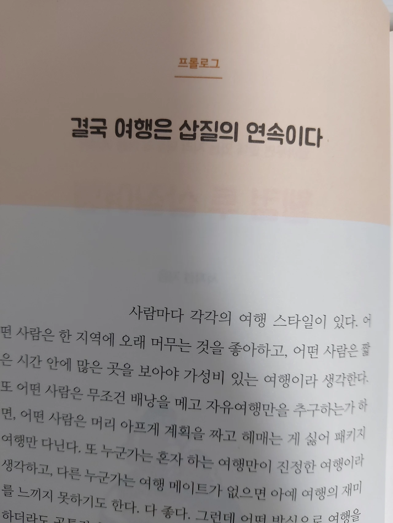프롤로그 중 결국 여행은 삽질의 연속이다. 여러 가지 여행의 방식을 모두 경험해본 입장에서 말하자면, 세상에 완벽한 여행법은 없다. 당신이 여행자라면 어떤 여행에서라도 삽질은 하게 될지니...