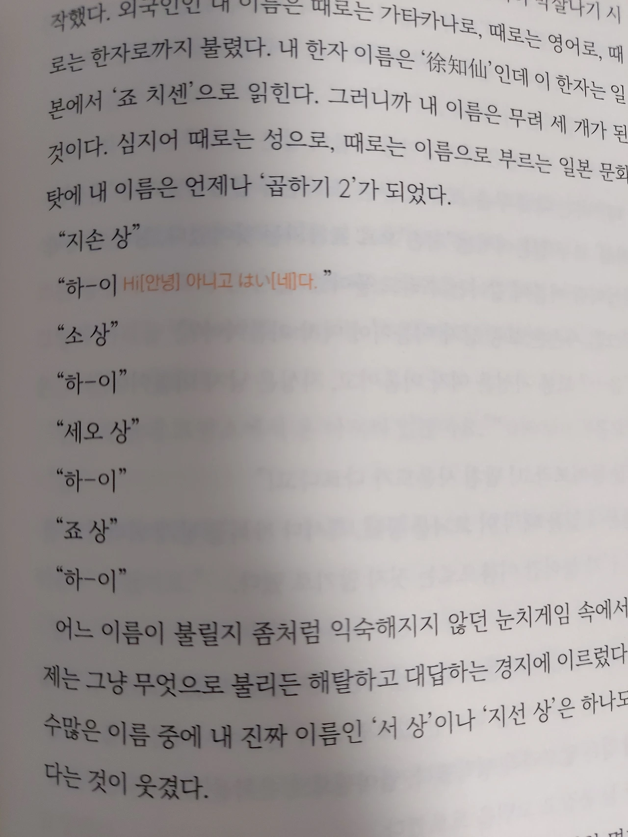 일본 교환학생 시절일 때 일본어에는 ‘ㅓ’ 사운드가 없어 ‘ㅗ’로 읽는다. ‘소 지손’ 내 한자 이름이 일본에선 ‘죠 치센’으로 읽힌다. “지손 상”