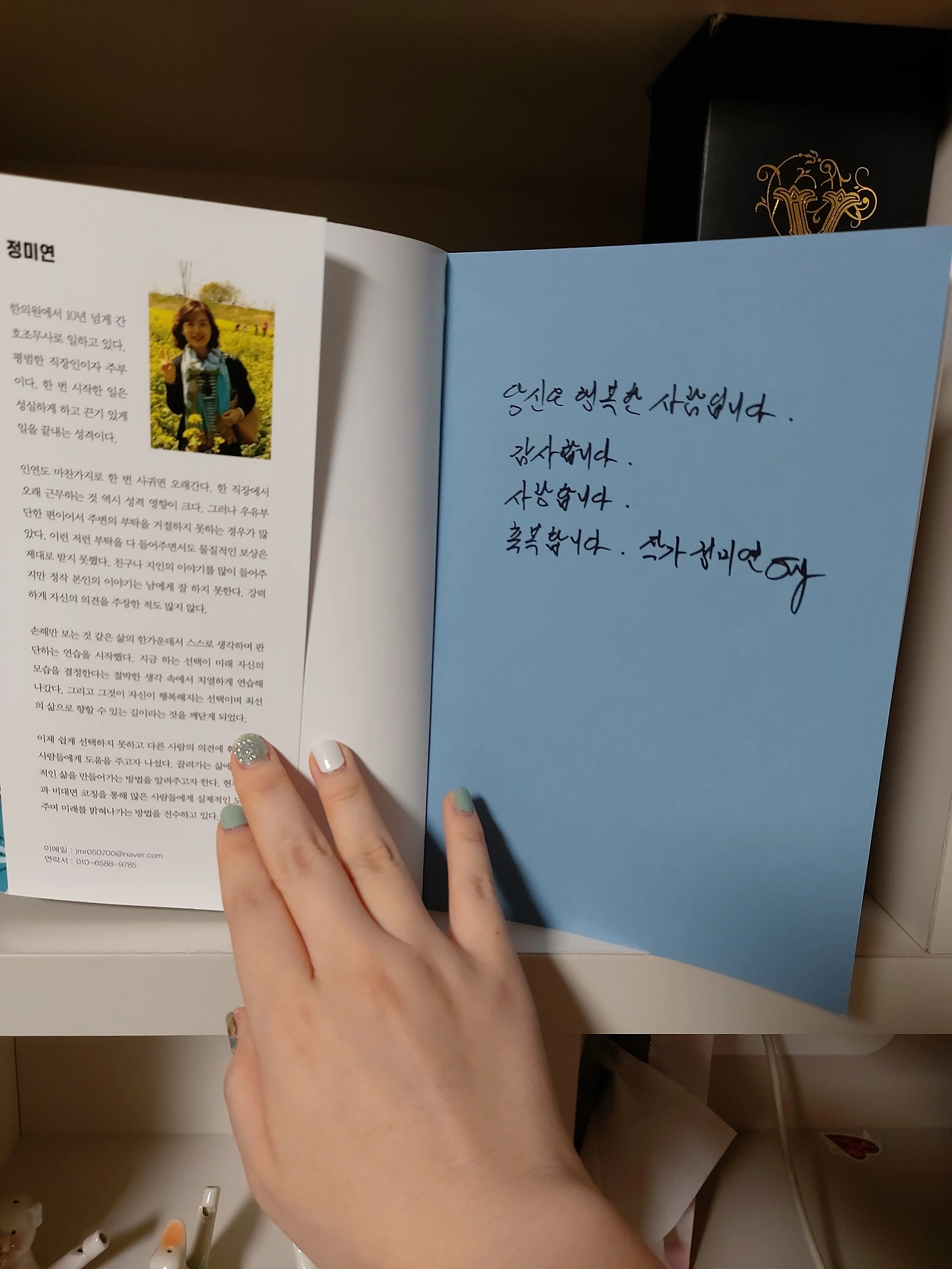 작가의 인생 송두리 째 담겨 있는 이 책을 읽고 나서 다시 펼쳐본 작가의 프로필에 실린 맑은 미소와 선한 얼굴에서 더 슬프게 다가왔다. 작가는 이렇게 말하고 있는 것 같다. “나도 살아냈으니, 당신도 살아낼 수 있어요.‘