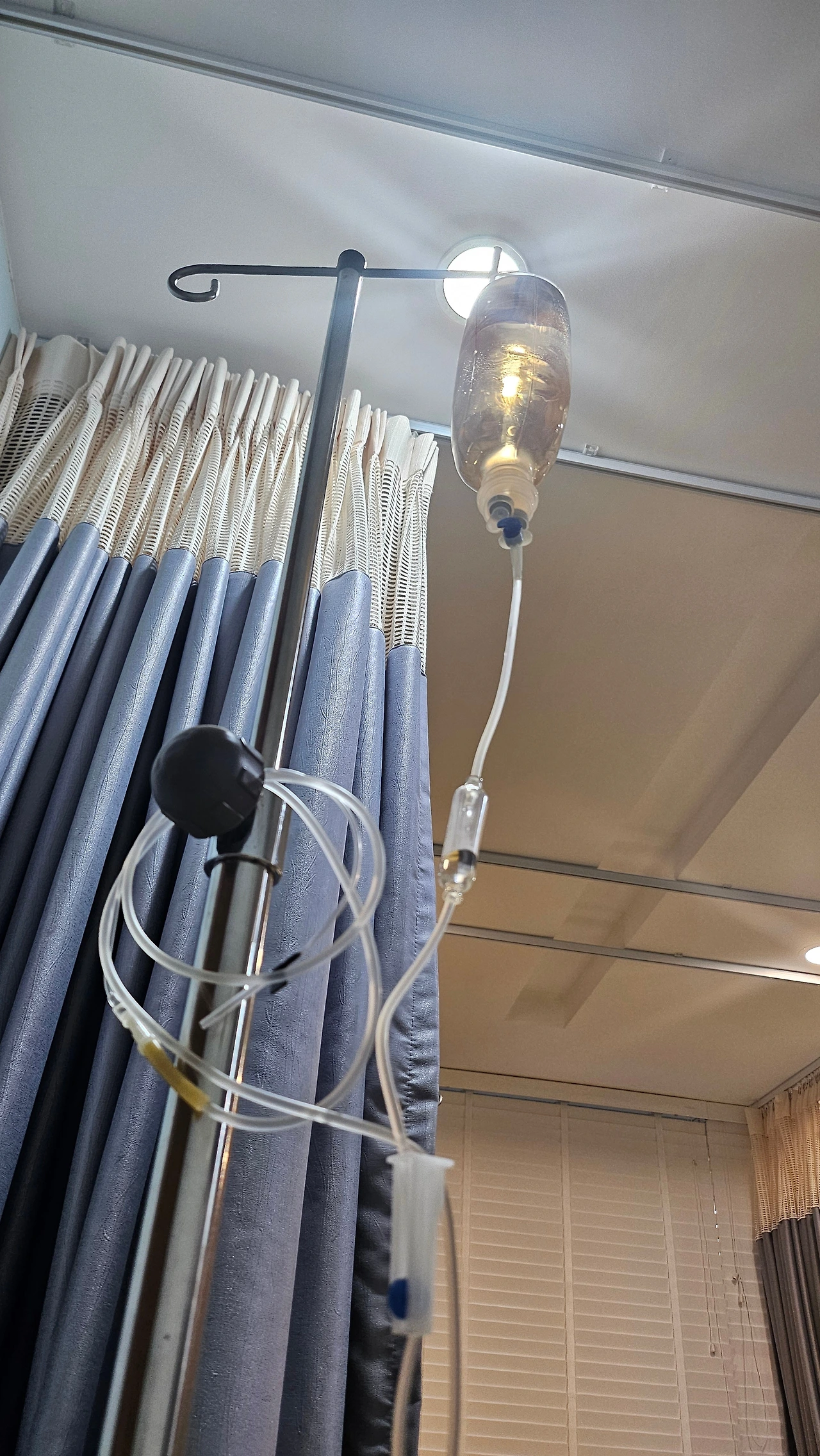 어제는 감기, 위염, 피로누적으로 링거를 맞았다. 2 주내내 감기가 목으로 왔다가 나을만하면 코로 왔다. 떨어질만하면 다시 오는데 부지런하게 살아야 아프지 않았지만