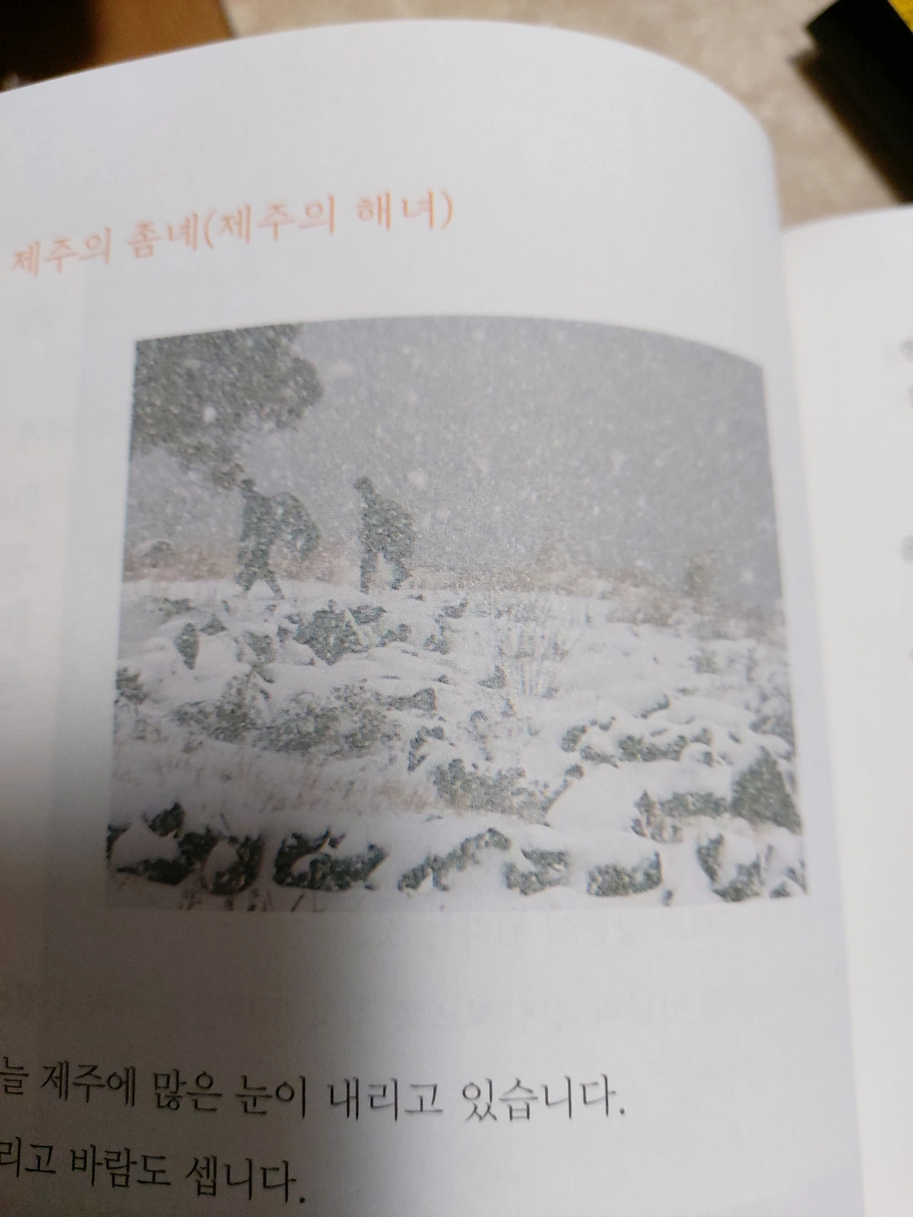 p.176 제주의 좀녜(제주의 해녀) 오늘 제주에 많은 눈이 내리고 있습니다. 그리고 바람도 셉니다. 갑자기 어머니 생각이 납니다. (중략) 그들은 철인이었습니다. 햇빛에 쪼그려 앉아 밭에서 일하고, 물질하면서는 숨을 참아야 했습니다. 그리고 머리가 아프면 뇌선(진통제)를 밥 먹듯이 꼭꼭 먹었습니다. 그들은 50이 넘으면서 머리가 아프고 다리가 아프고 신경통이 도진다는 말을 입에 달고 살았습니다.(일종의 잠수병)