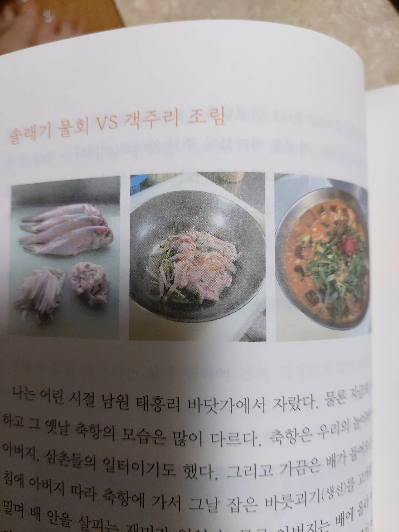 저자의 어릴적 추억이야기가 참 재미있다. 보리개역(미숫가루)의 달고 고소한 맛, 꿩독새기(꿩알)을 주워와서 삶아먹다가 어머니한테 ‘그 꿩이 얼마나 애돌크니’ 하시면서 야단맞고 도로 갖다놓고 , 지방이 많아 꼬신 자리물회,자리구이,자리젓갈의 맛과 해산물의 보고 애삐리에서의 추억, 도새기(돼지)키우기, 돗통과 돌토고리, 올레길의 어원, 그리고 제주에서 해녀로 사는 것에 대해 읽으면서 제주에서 살아온 저자의 단맛,짠맛,쓴맛의 이야기들을 맛볼 수 있었다.