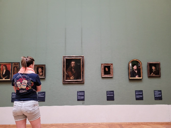 이날의 하이라이트, 사실은 독일을 대표하는 화가 '알브레히트 뮈러'의 '자화상'을 가장 보고 싶었었다. 스티브잡스가 생전에 그 작품에서 영감을 얻어 제스처를 따라 해 세간의 화제가 되었던 바로 그 작품. 역시 작품 속의 그의 얼굴에는 생기가 있어 보였다. 마치 살아 있는 사람처럼 말이다.
