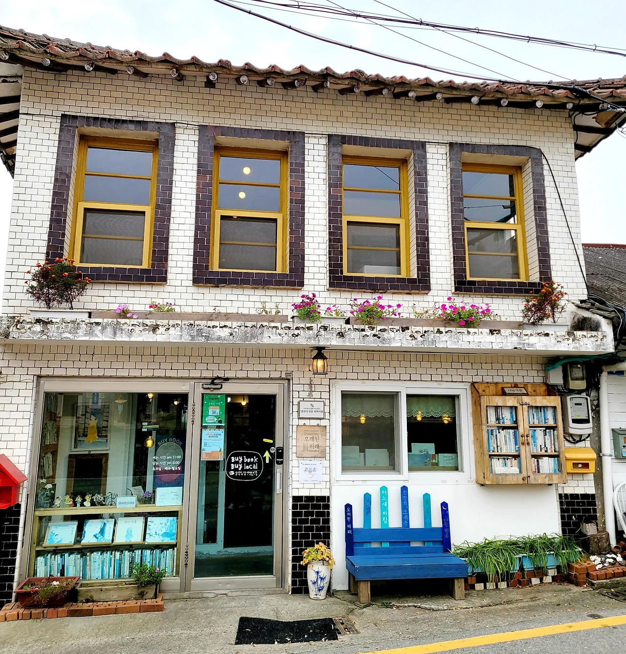 다음 방문지는 정확히는 알 수 없으나 대충 봐도 지은 지 50년은 넘었을 법한 건물을 리모델링한 조그만 시골서점 '오래된 미래'였다. 김팀장님 말에 의하면 최근에 그곳은 작지만 오래된 2층 건물, 외관은 흰색으로 현대적이지만 내부는 서까래가 훤히 보여 오래된 느낌도 공존하는 감성사진 촬영 핫 스폿이라고 했다. 그곳에 가면 평소 책을 가까이하지 않는 사람들도 책을 읽게 되는 놀라운 경험을 하기도 한다. 또 하나, 인심은 기본, 항상 밝은 표정의 사장님의 친절한 설명은 이 공간만의 특별함이다.