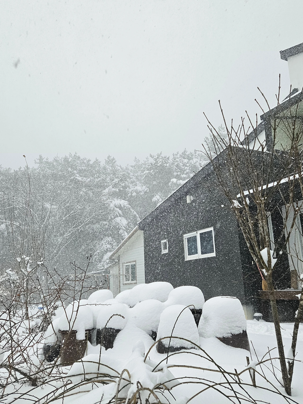 장독 높이만큼의 눈이 쌓였으니 저것이 하얀 쌀인 양 마음 한편 푸근하고 든든하니 그 무슨 걱정이 있겠는가.