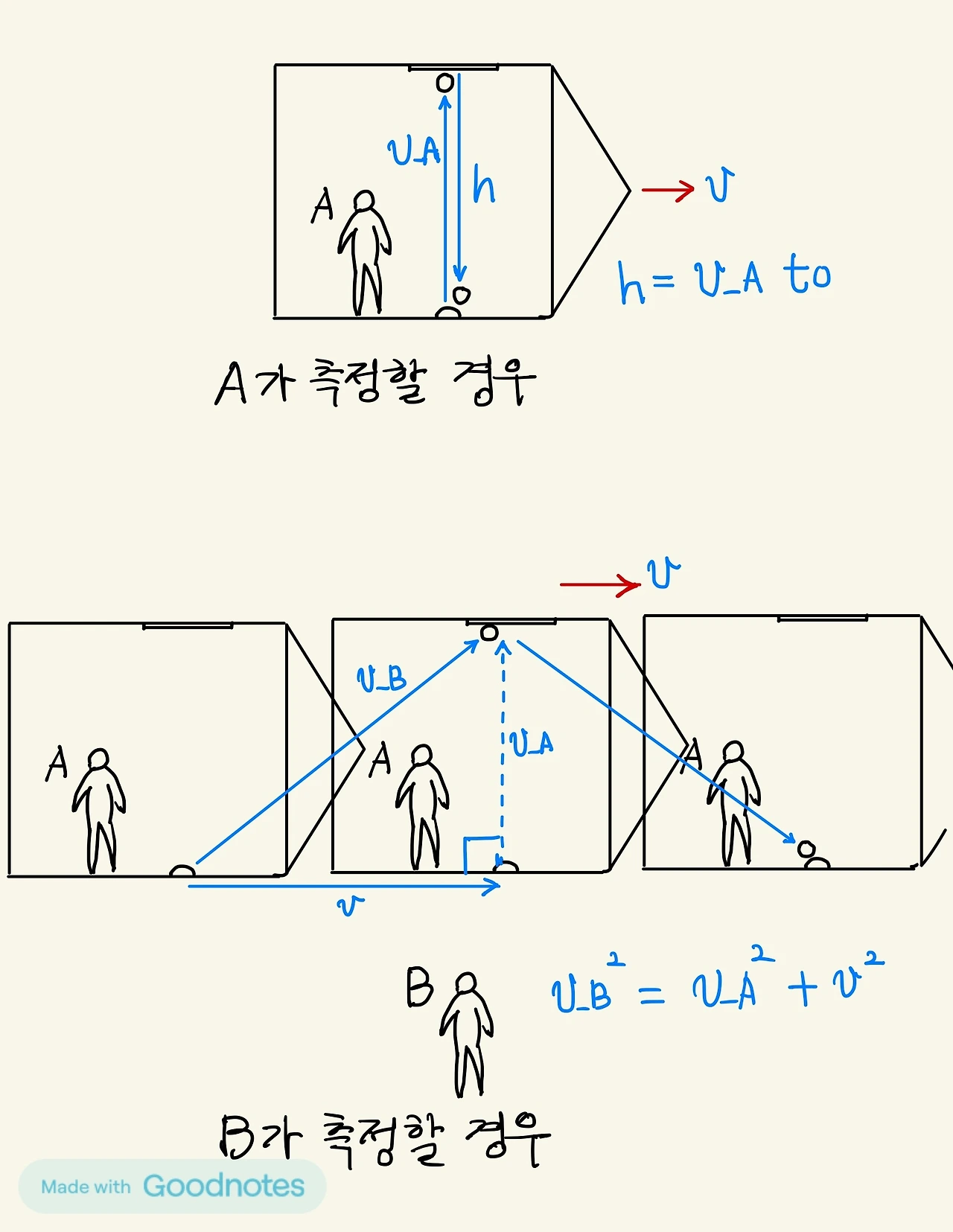 그림. 우주선 이동 수직 방향으로 공의 왕복 시간 측정