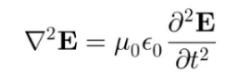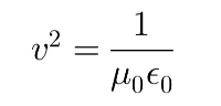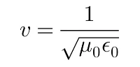 여기서 v는 파동의 속도를 의미하는데, 전기장과 자기장의 파동방정식에서 속도 부분을 보면 다음의 관계가 성립한다.