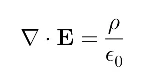 전기장(E)은 전하(ρ)에 의해 생성된다는 법칙이다. ε0는 진공에서의 유전율(permittivity)이고 8.85 x 10^-12 F/m (패럿/미터)의 값을 갖는다. 유전율은 어떤 매질이 전기장 안에서 전하를 얼마나 저장할 수 있는가 하는 척도이다.