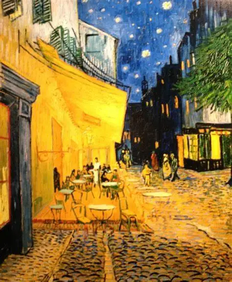 파란 밤하늘에 쏟아지는 별빛 아래 오렌지빛 조명받으며 앉아 보자. 목욕탕 따뜻한 물 속에 몸 담글 때처럼 "아, 좋다~" 탄성이 절로 나오지 않을까. 저 그림 속 카페가 아니더라도 어느 노천카페에 앉아 읽지도 못하는 영자신문 펼쳐 놓고 에스프레소 홀짝거리기, 바쁘게 지나치는 이들에게 손 흔들어주기…. 상상만으로도 기분 좋다.