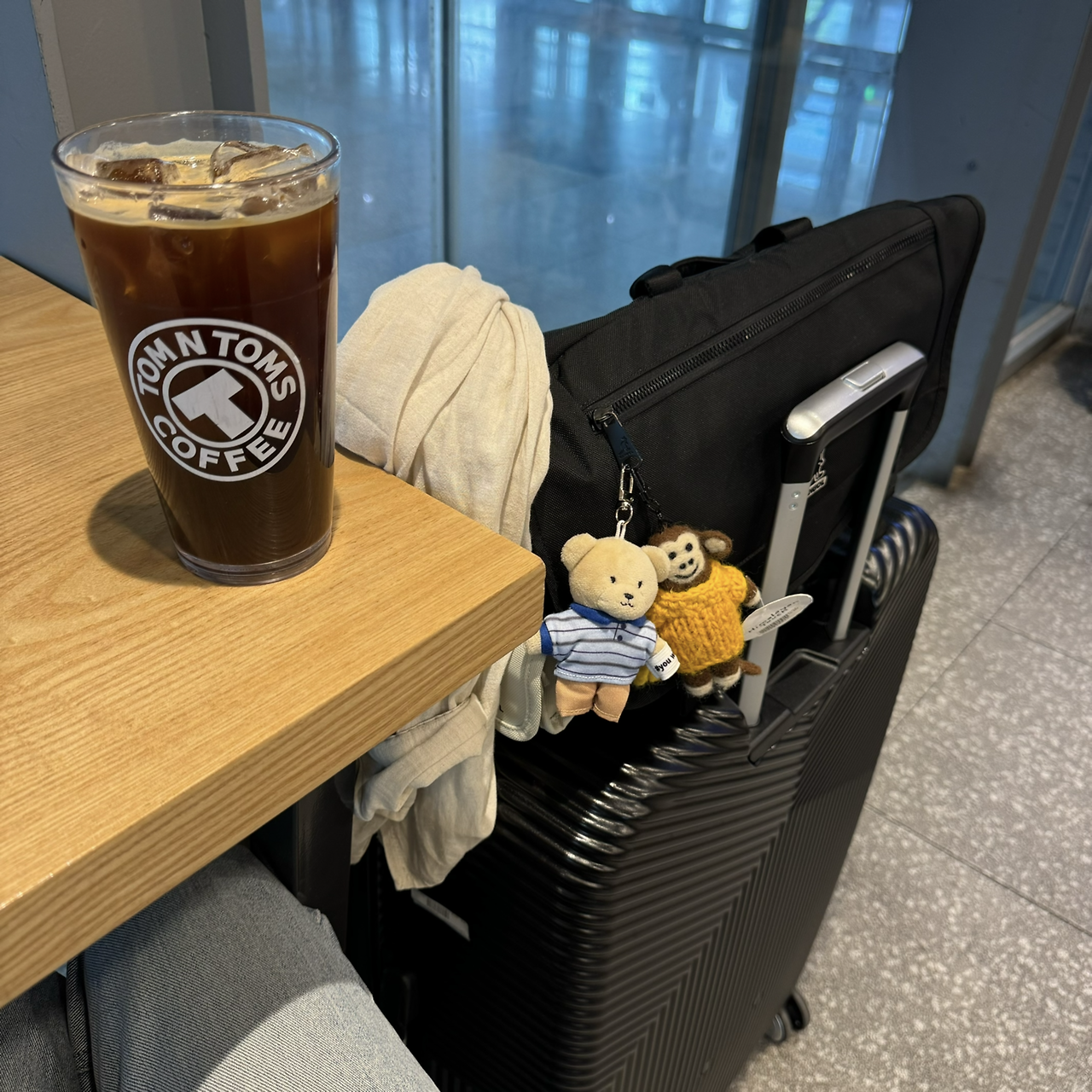 그러나, 캐리어의 시련은 여기서 끝이 아니었는데... 역 내 카페에서 커피를 마시며 한숨을 돌리며 앞전의 버스 기사님과의 에피소드를 즐거운 여행의 시작 해프닝 정도로 생각했다. 시간에 맞춰 도착한 기차에 올라타기까지는 말이다. 열차와 열차를 잇는 사이에 캐리어를 둘 수 있는 공간을 미리 파악해 둔 나는 기차를 타자마자 그쪽으로 향했다. 그런데... 모든 칸이 캐리어들로 꽉 차 있는 것이 아닌가? 내 캐리어 자체가 클 뿐만 아니라 칸칸이 최소 2개 이상의 캐리어로 가득 차 있어서 아예 캐리어를 슬쩍 들이밀 공간조차도 없었다. 목을 쭈욱 빼고 객실 승무원님을 애타게 찾았으나 기차가 역을 출발해서 빠른 속도로 달릴 때까지도 보이지 않았다. 일단은 캐리어의 스토퍼를 고정해 놓고 자리로 돌아가서, 코레일 앱으로 승무원 콜을 처음으로 써봤다. '혹시 비어있는 짐칸이 없나요? 제가 6-7호차, 7-8호차 사이는 확인해 봤습니다...' 그렇게 전전긍긍하며 캐리어를 다시 보러 가니 내 캐리어가 같은 위치에 있기는 했지만 아까와는 달리 눕혀져 있었다. 메시지를 보신 건가 싶어 자리에 와서 앉아 있는데, 역 하나를 지나고 나서 객실 승무원님께서 내 자리로 와주셔서 캐리어 관련 문의한 것 맞냐고 물어보셨다. 캐리어 눕혀있는 것 봤는데 거기에 둬도 괜찮냐고 물어보는 내게 '캐리어 그렇게 눕혀둬도 괜찮을까요.'라고 다정하게 물어봐주시는 객실 승무원님께 안도의 미소를 지으며 '저는 너무 괜찮아요!'라고 외치고 말았다. 생각보다 크게 나온 목소리에 다소 머쓱한 표정의 나를 보고 객실 승무원님께서도 웃으며 인사를 건네고는 다음 객실로 넘어가셨다.