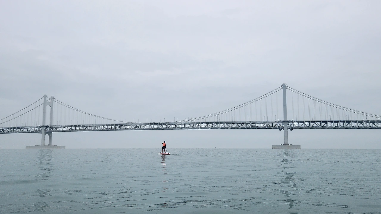 SUP(Stand Up Paddle Board)을 처음 탔던 것은 3년 전이었다. 회사 1박 2일 여름 워크숍 때였다. 그날도 날이 흐렸다. SUP 체험에는 워크숍 전체 인원 중 일부, 나를 포함해 4명 정도가 참여했다. 간단한 강습 후에 바로 바다에 내던져진 우리는 패들보드에 적응하기 위해 각자 고군분투를 했다. 땅에서 균형 잡기도 쉽지 않은데 파도가 출렁이는 바다 위에서는 더더욱 쉽지 않았다. 그래도 그동안 요가를 해온 게 도움이 되었는지 몇 차례의 시도 끝에 패들보드 위에 서는 데에 성공했다. 아슬아슬했지만 조금씩 요령이 생겨서 선 채로 패들링도 할 수 있게 되어서 광안대교를 향해 조금씩 나아갔다. 한참을 신나서 패들링을 하다가 뒤를 돌아보니 이미 해수욕장과 보드에서 앉아서 패들링을 하는 사람들과 거리가 꽤나 벌어져 있었다. 그때 문득 마음속에 어떤 묵직한 감정과 함께 머릿속에는 이런 질문이 떠올랐다. '나 이렇게 계속 나아가도 되나? 멀어져도 되는 건가?' 순간 멈칫하며 패들링이 느려졌다. 잠시 망설이다가 패들보드를 돌려 다시 해변 쪽으로 돌아왔다.