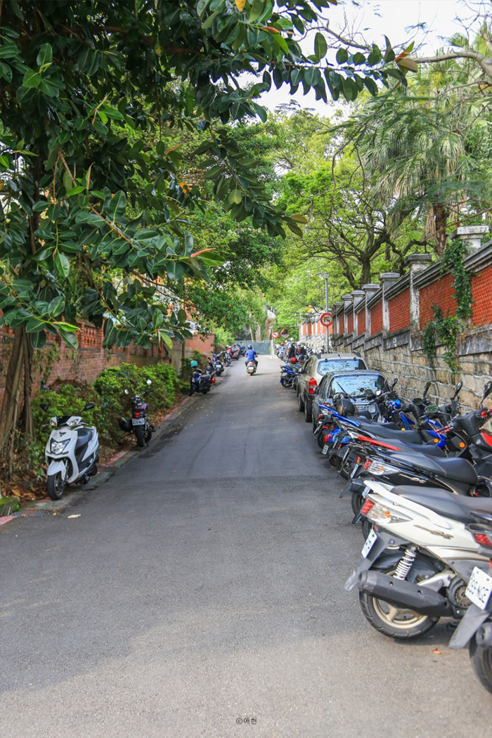 담강중학교에서 진리대학 반대쪽으로 길을 따라 내려오면 오토바이가 줄 세워져 있는 간이 정류장 같은 곳이 있는데 -정확히 뭐하는 곳인지는 모른다- 이 곳이 참 좋다. 단수이에 올 때마다 사진 찍는 스폿 중 하나. 이 뒤로 작은 공원이 하나 있고 그 근처에 자리를 잡고 가만 앉아있으면 그렇게 좋을 수가 없다. 대만 청춘 영화 속 한 장면에 들어와 있는 것 같기도 하고.