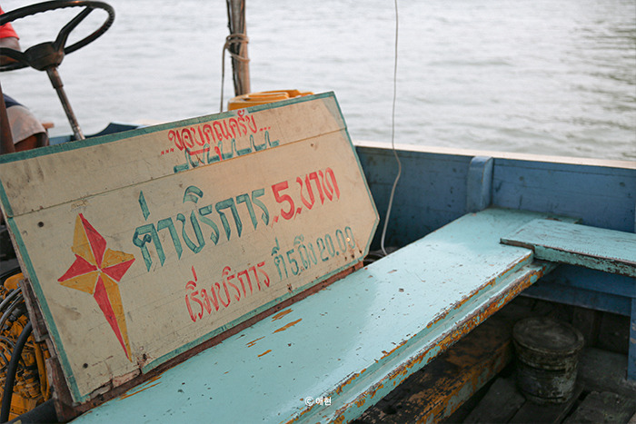 맡겨두었던 나의 여권과 자전거를 맞바꾸고 수상 보트에 올랐다. 그러고 보니 태국에선 수상보트를 참 많이도 탔다. 방끄라짜오를 오갈 때, 아시아티크를 오갈 때, 또 <왓 포>와 <왓 아룬>을 오갈 때 그리고 오늘처럼 아유타야에서. 가장 좋아하는 건 방끄라짜오를 갈 때 타는 수상보트인데 그 시간이 길기도 할뿐더러 내가 좋아하는 곳을 가는 것에 대한 기대감 때문인 것 같다.