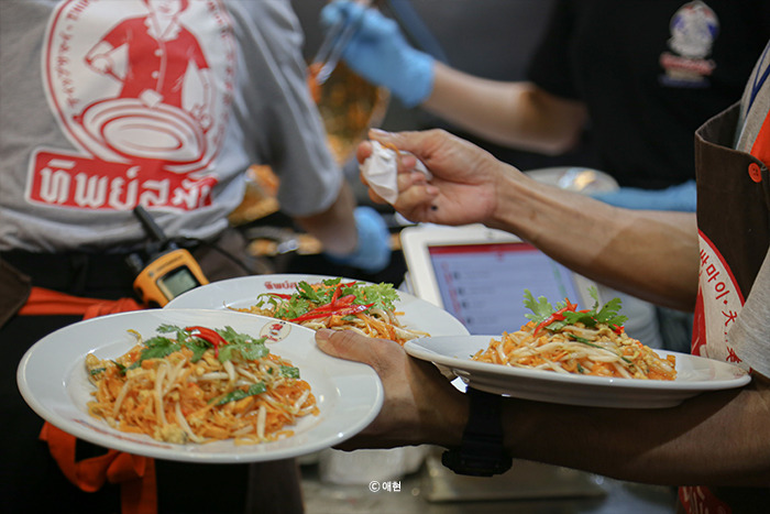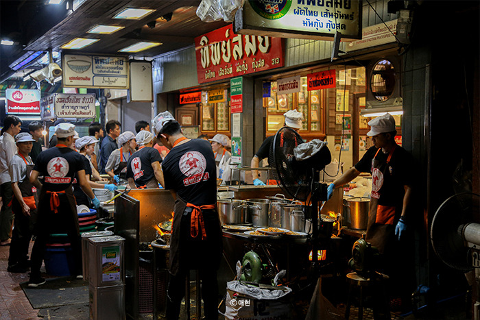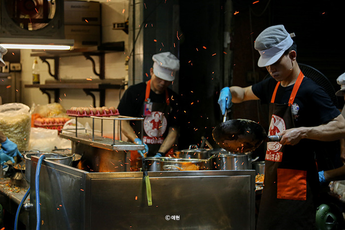 후아람퐁에 도착해서 역 밖으로 나오니 불현듯 <팁싸마이>가 생각났다. 첫 방콕 여행에서 팁싸마이를 가기 위해 후아람퐁에 와 툭툭을 탔더랬다. 친구들에게 저녁 메뉴를 팁싸마이의 팟타이로 (사실은 오렌지 주스로) 바꾸는 건 어떠냐 했고 다들 괜찮다고 해서 바로 툭툭을 잡아탔다. 팁싸마이까지 150바트를 부르길래 흥정 없이 바로 탔다. 어차피 바가지인 게 뻔한데 괜히 적정가 찾아보며 시간 쓰고 기분 상하기 싫었다.