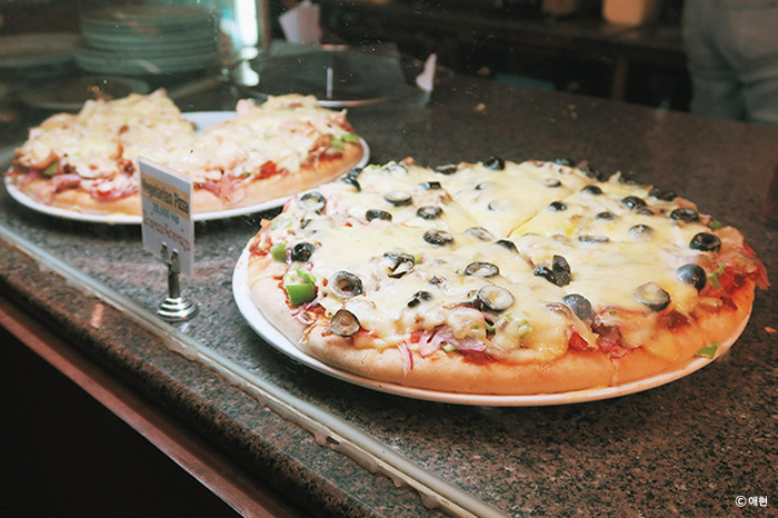 만수르- 못해도 이건희처럼은 살 수 있을 거라 자신만만해하며 라오스에 왔으나 방비엥에서 이건희의 ㅇ도 꺼내지 못하는 지갑이라는 것을 깨달았고, 루앙프라방에서는 한국에서보다 더 가난하게 여행했다. (이 중 제일 가난한 건 J였는데 그는 비엔티엔 숙소에서 첫날밤 똑같이 나눠준 개인 경비를 호텔 침대에 그대로 두고 나왔다. 그것을 발견한 게 언제였나 기억은 안 나지만 아무튼 비엔티엔은 아니었다.) 돈은 없어도 배는 채워야 하지 않겠나. 나는 하와이안 피자 한 조각을, J와 M은 베이글을 시켰다. 다만 가난한 여행자라는 말이 빈 말은 아니라 커피는 시킬 수 없었다. 커피를 마시지 않는 나야 상관없지만 커피를 즐기는 둘은 도저히 참을 수 없었던지 M의 개인 경비로 커피를 사긴 했지만. 내가 시킨 하와이안 피자는 파인애플과 베이컨이 들어있는 엄청 맛있는 피자였다. 그러나 이제야 고백한다. 저 피자 한 조각으로 내 배를 채우기엔 아침이 너무 길었노라.
