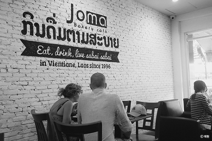 라오스를 여행하는 모든 날들이 다 비곤했지만 그 빈곤함은 마지막 날이 최고였다. 참다못한 M이 아무래도 돈이 있어야겠다며 ATM기에서 카드로 돈을 뽑았다. 100,000낍을 인출하는데 수수료가 40,000낍이 들었다. 무려 40%! 그래도 M의 그 돈 덕분에 <조마 베이커리>에서 지친 다리를 달랠 수 있었다.