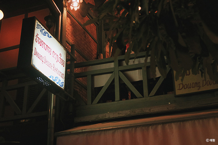 포잡은 라오스의 여느 식당이 그렇듯 활짝 열린 문에 선풍기만 몇 대 돌아가고 있었다. 이 말인즉슨 엄청 더웠지만 에어컨이 없었다는 소리. 그래서 자리에 앉자마자 얼음물을 부탁했다.