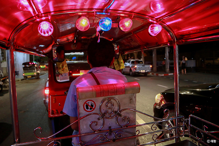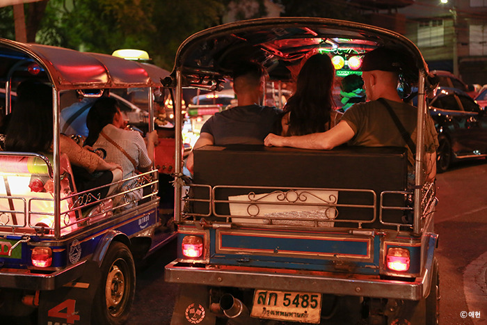 그 사람들에 밀리고 밀려 카오산로드로 되돌아왔다. 그리고 흥정을 통해 200바트에 툭툭을 타고 후아람퐁 역으로, 다시 MRT를 타고 아속역으로.