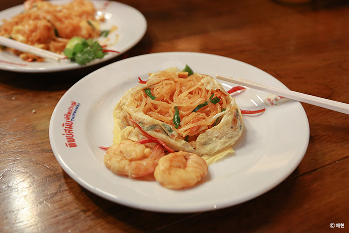 여행 후 「짠내투어, 방콕편」에서 오렌지주스 이야기가 나오는 순간 "아 팁싸마이 말하는구나!"라고 바로 떠오를 만큼 강렬한 맛을 선사한 팁싸마이. 몰랐는데 가이드북에도 나온 곳인 것 같더라. 하긴 이 정도 맛인데 안 나오면 이상하지. (여행 가이드북의 맛집은 믿지 않지만 이 정도 유명한 곳이 나오지 않는다면 또 그건 그대로 못 믿을 가이드북이다.)