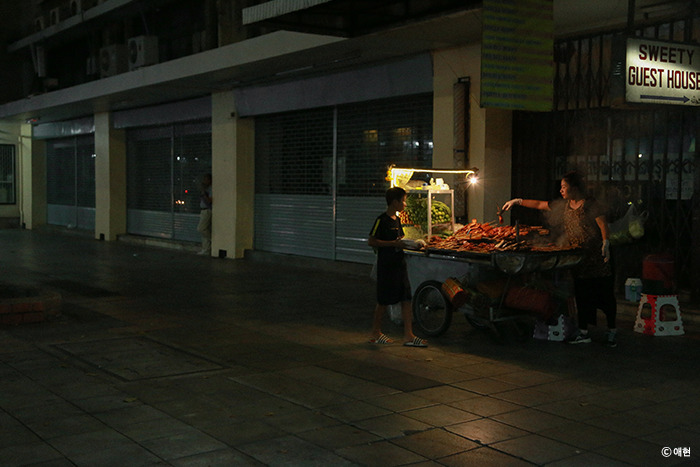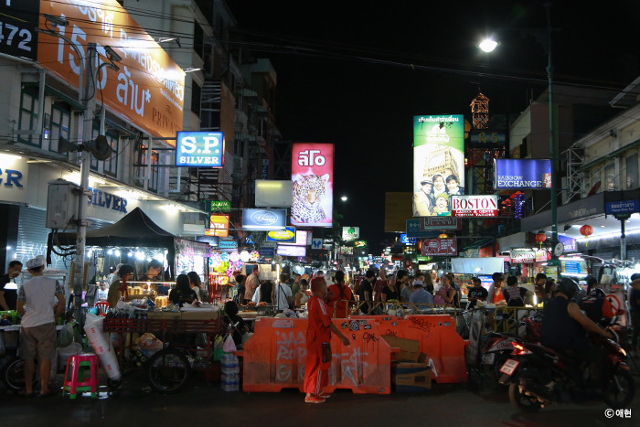 글쎄. 내가 읽어본 수많은 여행기와 사진을 보고 카오산로드는 클럽을 좋아하는 사람들이 가면 좋을 곳 혹은 문란한 곳이라는 이미지가 강했다. 한마디로 유흥의 거리. 그러나 실제로 가본 카오산로드는 여느 동남아의 야시장과 크게 다르지 않았다. 일단 입구를 보자마자 조금 실망했다. 베트남 하노이에서 갔던 야시장을 그대로 옮겨놓은 듯했기 때문이다. 하노이의 야시장이 싫었다는 말이 아니라 내가 생각했던 카오산로드의 모습이 아니었단 뜻이다.