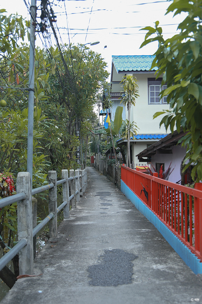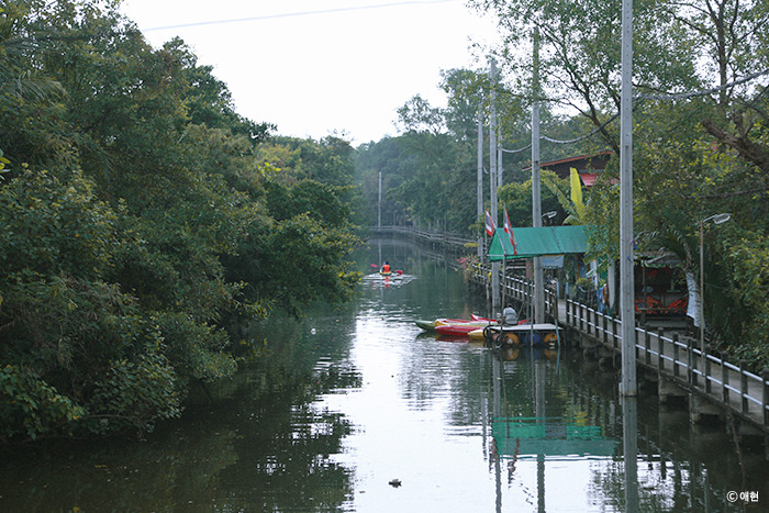 우연히 본 한 편의 여행기로 방끄라짜오에 매혹된 나는 이곳은 꼭 가야 한다고 외쳤다. 방끄라짜오는 태국 근교에 있는 섬으로 배를 타고 짜오프라야 강을 건너서 갈 수 있는 곳이다. 흔히들 방끄라짜오를 '방콕의 폐' '방콕의 녹지(green lung)'라는 말로 표현하는데 그만큼 온 섬이 나무로 뒤덮여있다. 어느 곳을 가든 사방이 나무로 가득한 곳. 어떤 이는 이곳을 정글이라 하던데 그 말이 딱이었다. 방끄라짜오는 방콕 속 작은 정글이었다.