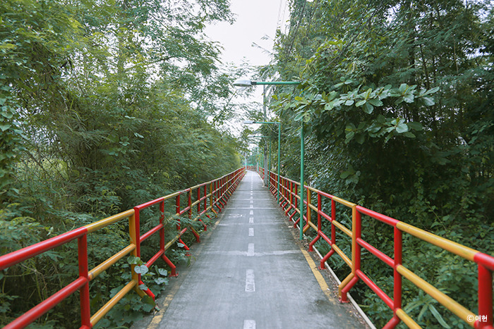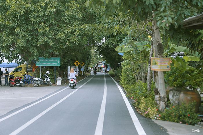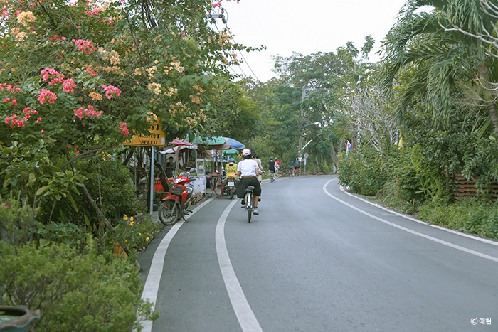 왜 다들 방끄라짜오를 방콕의 폐라고 하는지 직접 오면 그 이유를 더 잘 알 수 있다. 도로 양옆으로 쭉쭉 서있는 푸른 나무들. 그 사이를 자전거를 타고 달리는 기분이 참 좋았다.