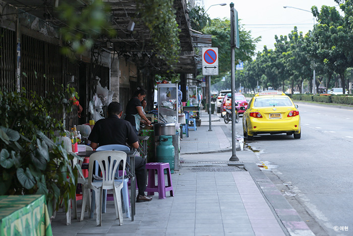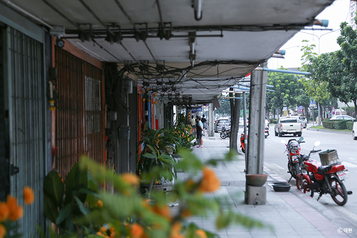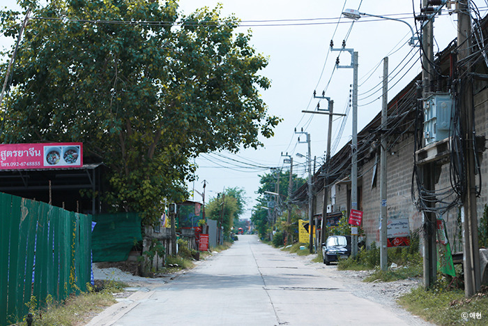 방콕 여행기에서는 다소 생소할 수도 있는 방나역에서 하차, 정확한 출구는 알 수 없어 구글 지도를 켜고 방나피어와 가까운 적당한 곳으로 나왔다. 역에서 방나피어까지 걸어갈까 툭툭을 탈까 고민하다가 30분 거리라 걸어가 보기로 했다. 중간에 구글 지도가 도보로 이동할 수 없는 길을 알려주어 갔던 길을 돌아 나오기도 했지만, 그것을 핑계로 근처에 있는 카페에서 잠시 쉬다 나올 수 있어 좋았다. (두 번의 방콕 여행 중 방끄라짜오에 세 번이나 갔다 온 지금은 방나역에서 방나피어로 갈 때는 무조건 택시를 추천한다.)