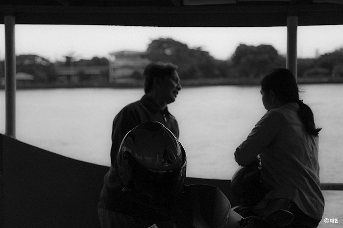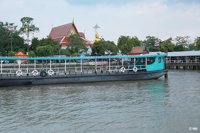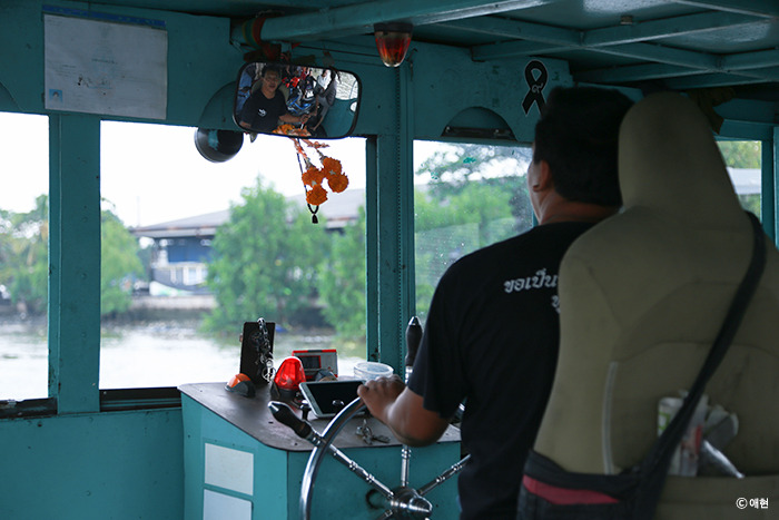 모든 것을 포기했을 때 선착장에 도착한다. 강이 보이는데 얼마나 기쁘던지! 선착장에서 5분 정도 배를 타고 강을 건너면 방끄라짜오에 도착한다. 뱃삯은 한 사람당 4바트로 이때까지만 해도 하차할 때 냈었는데, 2018년 7월에 갔을 때는 먼저 내고 탔다.