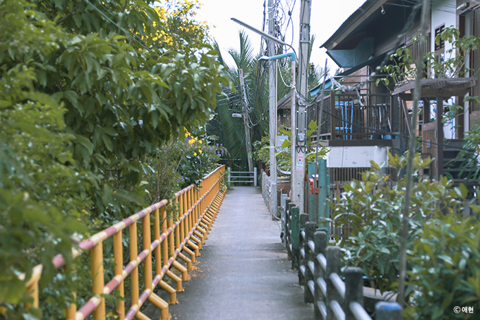 우리처럼 막다른 길로 가지 않으려면? 방나역에서 지도를 따라가다가 '사람이 갈 길이 더 없을 것 같은데'라던가 '곧 길이 끝나겠구나'라는 느낌이 오는 길이 나타나면 왼쪽으로 고개를 돌린다. 이 느낌은 무조건 온다. 길의 생김새가 이 느낌이 올 수밖에 없다. 아무튼 고개를 돌리면 눈앞에 사원이 나타나는데 그 사원으로 들어가야 한다. 들어가서 (들어간 순간의 나를 기준으로) 오른쪽으로 나있는 샛길로 빠져나와 다시 구글 지도를 켜고 걷는다.