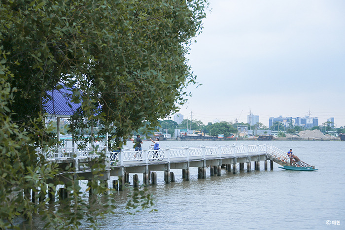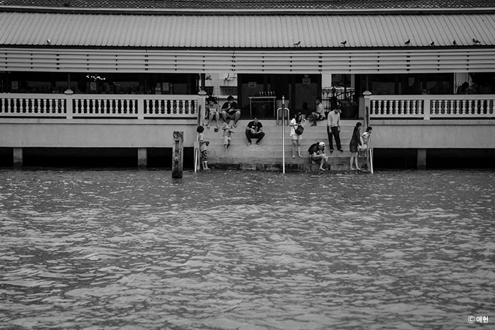 5분에서 10분 남짓 수상 버스를 탄 것 같다. 같은 수상 버스지만 방끄라짜오를 갈 때와 전혀 다른 분위기. 나무가 가득한 숲 대신 (조금 낮은) 빌딩 숲을 보았다. 이도 나쁘지 않네.