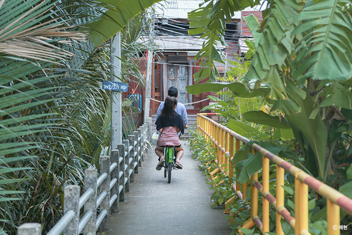 방콕이란 도시 자체가 초록색이 넘실대지만 방콕의 그 어느 곳보다 더 푸르렀던 방끄라짜오. 거기에 자전거까지, 이 날 너무 좋았던 기억에 결국 우리는 마지막 날 한 번 더 방끄라짜오에 오게 된다.