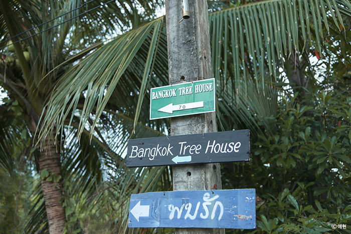 정신 놓고 달려 처음 자전거를 대여했던 곳으로 돌아왔다. 슬슬 방콕 시내로 나가야 할 때가 되어 그전에 빠르게 점심을 먹기로 했다. 우리가 고른 곳은 방끄라짜오 내 레스토랑 중 가장 유명한 듯한 <트리하우스>. 원래는 호텔을 찾다 발견한 곳으로, 호텔 겸 레스토랑인가 보더라. 선착장에서 도보로 5분 정도 거리에 있다.