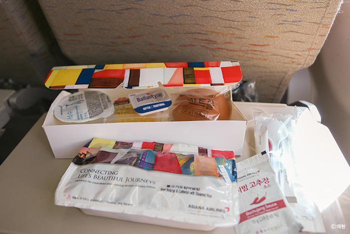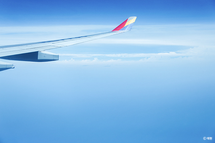 출국 심사 줄 뿐 아니라 비행기 탑승 줄도 어마어마했다. 보통 때라면 그 누구보다 빨리 줄을 서서 가장 빨리 비행기에 탔겠지만 오늘은 도무지 힘이 나질 않는다. 그래서 되려 가장 마지막에 탑승했다. 그리고 탑승하자마자 곯아떨어졌다. 잘 자고 있는데 승무원이 기내식으로 우리를 깨웠다. 진에어 이후 두 번째 기내식인데 음식의 퀄리티 자체는 아시아나의 것이 훨씬 좋았으나 내 입에는 진에어가 맞았다. (이 이후 세 번째 기내식을 타이항공에서 먹었는데 진에어, 아시아나 통틀어 타이항공 것이 제일 맛있었다.)