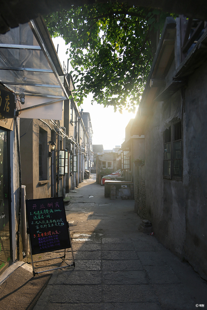 D가 호스트와 돈을 뽑으러 간 동안 P는 숙소에서 쉬고 나는 카메라를 들고 밖으로 나왔다. 숙소가 있는 좁은 골목에서 1-2분 남짓 걸어 나가자 내 눈앞에 놓인 시탕의 풍경! 시탕을 검색하면 가장 먼저 나오던 사진 속 그 모습이었다. 때마침 해가 지고 있어 강 위로 빛이 예쁘게 퍼져나갔다. 그 순간을 놓치기 아쉬워 계속 셔터를 눌렀다. 내가 이 모습을 보러 상해에 도착하자마자 또 버스를 타고 여기까지 달려왔나 보다. 사실 오면서도 주가각이나 우전을 갔어야 했나 하고 조금 후회도 했는데 그 후회가 모두 날아갔다. 낮보다 밤이 더 아름답다는 시탕이지만 나는 낮이 더 좋았다. 아직 시탕의 밤을 보지 못했지만, 보아도 그럴 것이라 생각했다.