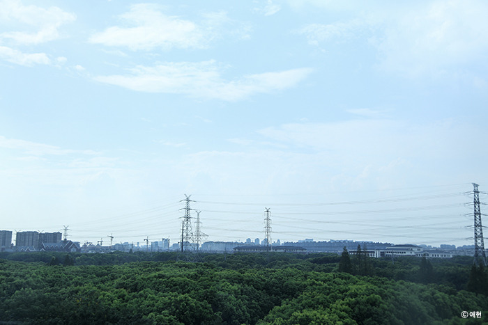 주말이라 차가 막혀서 한 시간 반 정도 걸렸는데 시내에서 고속도로로 나가는 길까지는 우리나라와 비슷했다. 그러나 고속도로 밖으로 나오자마자 길이 확 바뀌었다. 매연이 뿌옇게 뿌려져 있을 거라 생각했으나 순간 시야가 확 트였다. 그리고 눈 앞에 펼쳐진 푸르고 빽빽한 나무 숲. 키 큰 건물들도 저 멀리에 있어 눈앞에 걸리는 것도 없었다. 와, 내가 생각한 중국과 전혀 다르잖아!