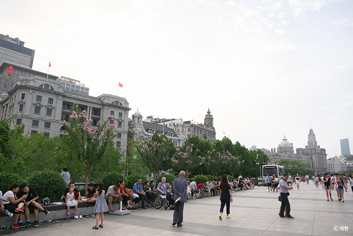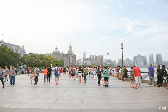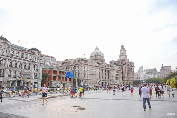 쉴 만큼 쉬었으니 이제 다시 움직여보자. 저녁을 먹기에는 이른 시간이라 라면과 에그타르트를 소화시킬 겸 해서 와이탄으로 떠났다. 와이탄은 야경으로 유명한 곳이지만 이국적인 주변 건물들로 낮에도 꽤 멋스러운 곳이라 했던가. 15-20분 정도 걸었나, 어느새 우리 주변이 사람들로 바글바글해졌다.