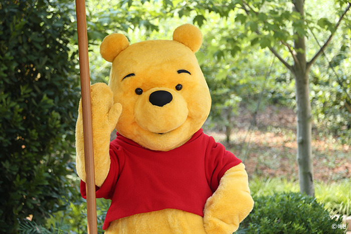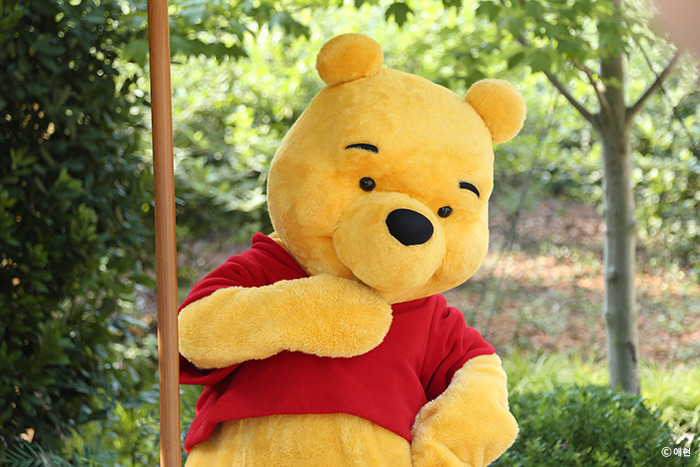 P와 D는 지치지도 않는지 다른 놀이기구를 타러 가고, 트론 때문에 머리가 아픈 나는 홀로 굿즈샵을 떠돌았다. 마침 아이들이 타려는 놀이기구 옆에 푸 굿즈샵이 있었다. 귀여운 푸 인형이 있었지만 나는 푸를 좋아하지 않아 구경만 했다. 따지고 보면 나는 딱히 좋아하는 디즈니 캐릭터도 없으면서 디즈니랜드에 가자고 노래를 불렀네. 그래도 귀엽긴 해서 한창 구경하고 있으니 늦을 것 같던 아이들이 돌아왔다. 놀이기구를 타려면 세 시간을 기다려야 한단다. 세 시간이나 기다릴 만큼의 놀이기구냐, 그건 또 아니지. 그래서 놀이기구는 포기하고 굿즈샵 앞에 있는 푸와 사진을 찍었다. 줄 서서 찍는 거였는데 이 줄에 서있는 성인은 우리뿐이었다. 아무렴 뭐 어때.