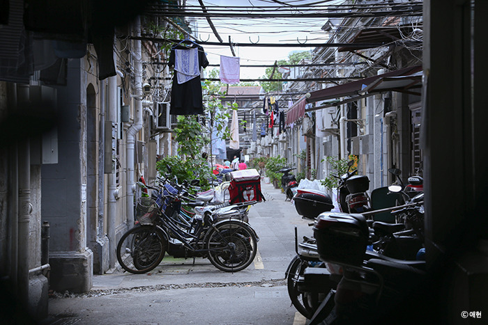 신천지에서 조금 벗어나 상해 예술가의 거리라는 <타이캉루 티엔즈팡>에 갔다. 이번에는 지도를 켜고 걸었다. 입구가 여러 곳에 있으나 우리가 찾아간 방향의 입구는 눈에 잘 띄지 않는 좁은 골목에 역시 눈에 잘 띄지 않는 작은 간판에 달려있었다.