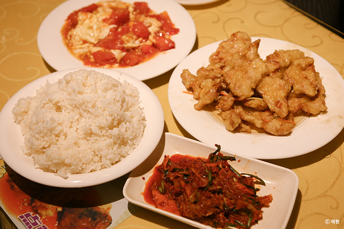슬슬 배가 고파 <동베이차이관>에서 저녁을 먹었다. P가 찾아온 곳으로 나름 맛집이란다. 꿔바로우와 우리가 중국에서 가장 열광했던 음식인 토마토 스크램블을, 그리고 나를 위한 밥과 김치를 시켰다. 음식은 전부 맛있었고 김치도 중국에서 먹은 것 중 가장 먹을만해서 다 먹었다. 밥이 3인분은 되는 것 같았는데 김치가 있으니 그다지 많아 보이지도 않아 내가 다 먹었다. 한국인은 역시 밥심이지.