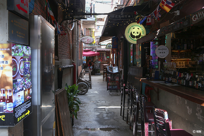 그러다 들어간 분위기 좋은 이탈리아 음식점. 짧은 골목 하나에 음식점이 꽉 차게 들어서있었다. 간간이 펍도 섞여있고. 모두 다 가보고 싶었으나 그중 가장 끌리는 곳에 들어가서 피자와 샐러드, 파스타를 시켰다. 가장 먼저 오렌지주스가 나왔는데 미지근해서 깜짝 놀랐다. 생과일을 갈아 만든 건 확실한데 상온에 있던 오렌지와 미지근한 물을 갈았는지 주스가 전혀 시원하지 않았다. 중국에 올 때마다 음료를 시킬 때는 시원한 것을 달라고 요구해야 했고 또 요구했지만, 생과일주스가 미지근할 거라곤 생각지 못해 미처 말하지 못했더니 이런 대참사가 일어났다. 이어서 피자와 파스타가 나왔으나 모든 것을 한 번에 맛볼 수는 없었다. 메뉴 하라를 다 먹으면 그제야 다음 음식이 나올 정도로 느렸던 곳. 심지어 아보카도 샐러드는 주문이 누락되었단다. 뒤늦게 그 사실을 알고 재차 주문해서 굉장히 늦게 나왔지만 맛은 괜찮았다. 샐러드만 괜찮았다.