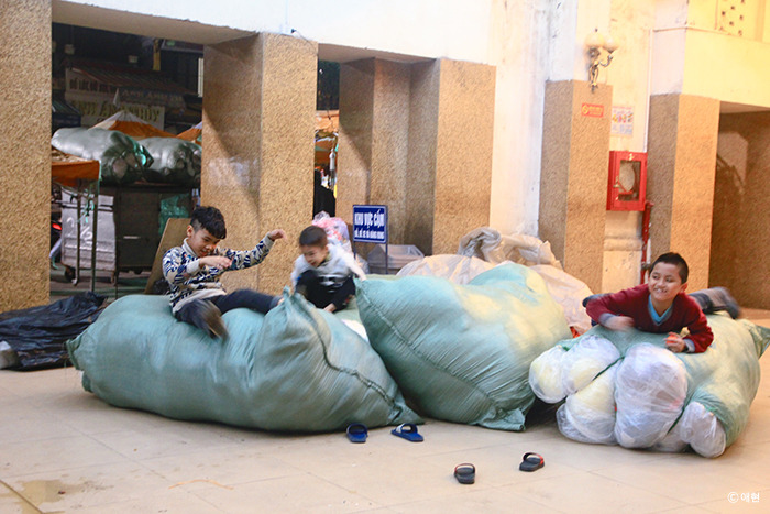 호텔로 들어갈까 아니면 뭔가를 더 해볼까 하다 감기가 조금 나아진 듯싶어 조금 더 움직여보기로. 하노이에서 가장 큰 시장이기도 하고 기념품을 사기도 좋다는 <동쑤언 시장>에 가기로 했다. 이번에는 거리가 꽤 되어서 표지판만 보고 가기엔 무리다 싶어 구글 지도를 켰다. 오토바이 부대를 지나쳤다 싶으면 또 다른 오토바이 부대가 나오고 지나쳤다 싶으면 또 나오고. 어린아이들도 많은데 이렇게 쌩쌩 달려도 되는 걸까. 물론 그들이 알아서 잘 피해 가긴 하지만 아이들이 움직이는 반경이 어른처럼 한정적인 것도 아니고 앞만 보고 걷다가 언제 옆으로 튈지 모르는데.