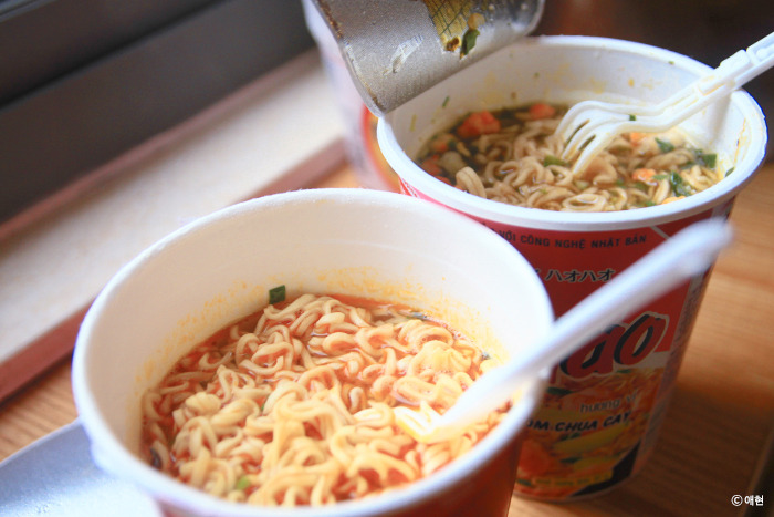 그리고 호텔로 돌아와 컵라면과 맥주 한 캔씩. 유명해서 산 분홍색 컵라면에는 미미하지만 고수 맛이 나서 조금 먹다 말았다. 정말 어지간한 건 다 먹겠지만 고수는 전혀 못 먹겠다. 아주 조금만 들어가도 그 맛이 확 나서 먹다 내뱉은 적이 한두 번이 아니야. 맥주는 가장 보편적으로 보이는 것을 집어 든 것인데 탄산도 약하고 조금 밋밋해서 역시 조금 마시다 말았다. 아, 생각해보니 아직까지 하노이에서 맛있게 먹은 게 없는 것 같다. 이번 여행이 점점 더 불안해진다.