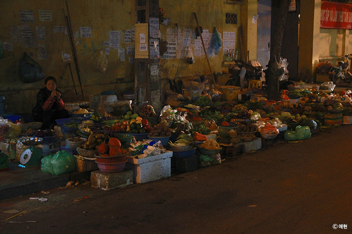 수많은 오토바이를 지나쳐 도착한 동쑤언 시장. 시장 안에도 오토바이는 많았지만 볼거리나 먹거리는 없었다. 기념품 사기 좋다는데 글쎄, 나는 딱히 기념품이라고 할만한 것을 보지 못했다. 야시장이라서 먹거리를 기대했는데 그도 시원치 않았다. 소문난 잔치에 먹을 것 없다더니 딱 그 꼴이었다. 그래도 시장이 이렇게 넓은데 뭐 하나는 있겠지 하고 구석구석 다 돌아보았으나 건진 것은 없었다. 더 이상 둘러보는 것은 의미가 없다고 판단, 맥주 거리에나 가서 뭔가를 먹기로 했다.