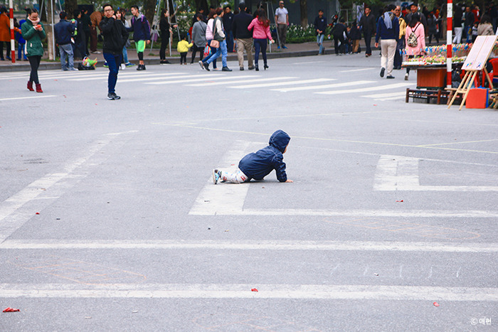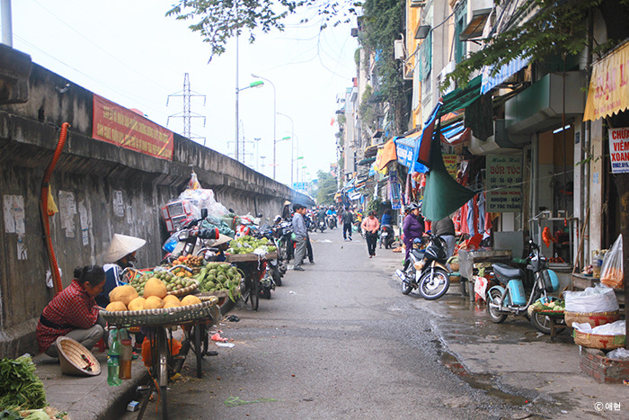호수 산책은 그만두고 에펠탑 설계자가 설계하고 프랑스가 지어 올렸다는 다리를 보러 가기로 했다. 택시를 타도 되었지만 역시 우리는 걸었다. 시간도 많았고 -그놈의- 구글 지도를 보았을 때 충분히 걸어갈만한 거리였다. 하노이의 메인 거리라고 할 수 있는 호안끼엠 호수 근처에서 조금만 벗어나면 고속도로로 들어가는 입구처럼 보이는 길게 난 도로가 나온다. 그리고 그 도로를 위험천만하게 건너면 -아마도- 시가지가 나온다. 시장 안도 누비는 오토바이이니 도로에서는 말할 것도 없다. 분명 횡단보도와 신호등이 있는데도 목숨을 걸고 건너는 기분이었다.