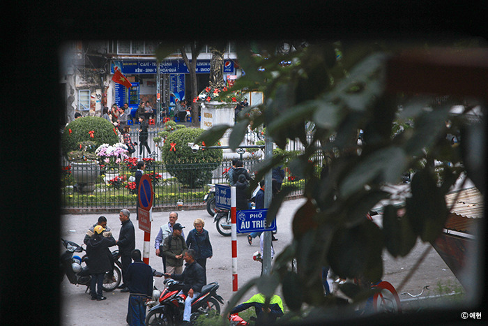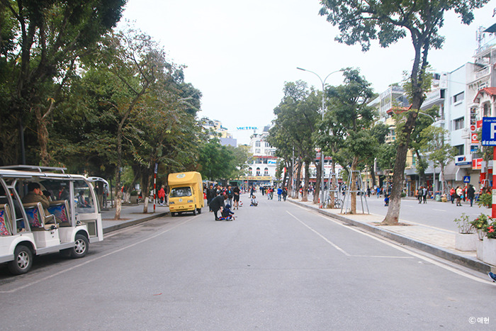체크아웃 후 짐을 맡기고 나와 마지막으로 호안끼엠 호수 주변을 구경했다. 목적 없이 유유자적. 하노이에서는 곳곳에 플라스틱 의자 두 개를 가져다 놓고 하나엔 상인이 앉고 다른 하나엔 과일을 얹어 파는 사람들이 많았다. 그리고 신기하게도 어떤 과일은 그 위에 고춧가루처럼 보이는 빨간 가루를 뿌려주기도 했다. 보통 동남아 여행을 할 때는 과일이 저렴해서 많이 먹는다는데 우린 도통 먹지를 않았다. 분명 어제 사려던 체리 가격에 놀랐기 때문일 테지. 또 이쯤 되었을 땐 하노이의 거진 모든 음식이 맛없어 과일의 맛도 기대되지 않았다.