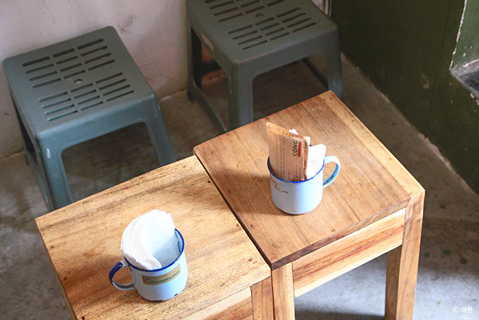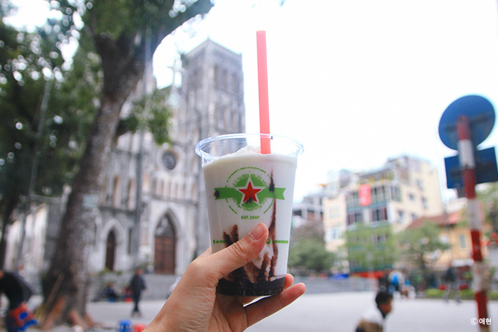 그래도 하노이에 왔는데 <콩 카페>는 한번 가봐야지. 오늘도 콩 카페는 사람들로 붐볐다. 8할은 한국인이었고 우리도 그중 하나. M은 가장 유명한 코코넛 커피 스무디를, 커피를 마시지 않는 나는 코코아 스무디를 주문했다. 직원 셋 중 음료 제조는 한 명만 해서 음료가 굉장히 늦게 나왔다. 그래도 나는 입안을 계속 헤집고 다니는 고수의 흔적을 없애야 해서 경건한 마음으로 기다렸다. 코코아 스무디는 그럭저럭 먹을만했다. 그러나 내가 시킨 코코아 스무디보다 M과 대다수의 한국인들이 시킨 코코넛 커피 스무디가 훨씬 맛있었다. 더위사냥 맛. 그래도 코코아로 고수를 몰아낼 수 있어 다행이었다.